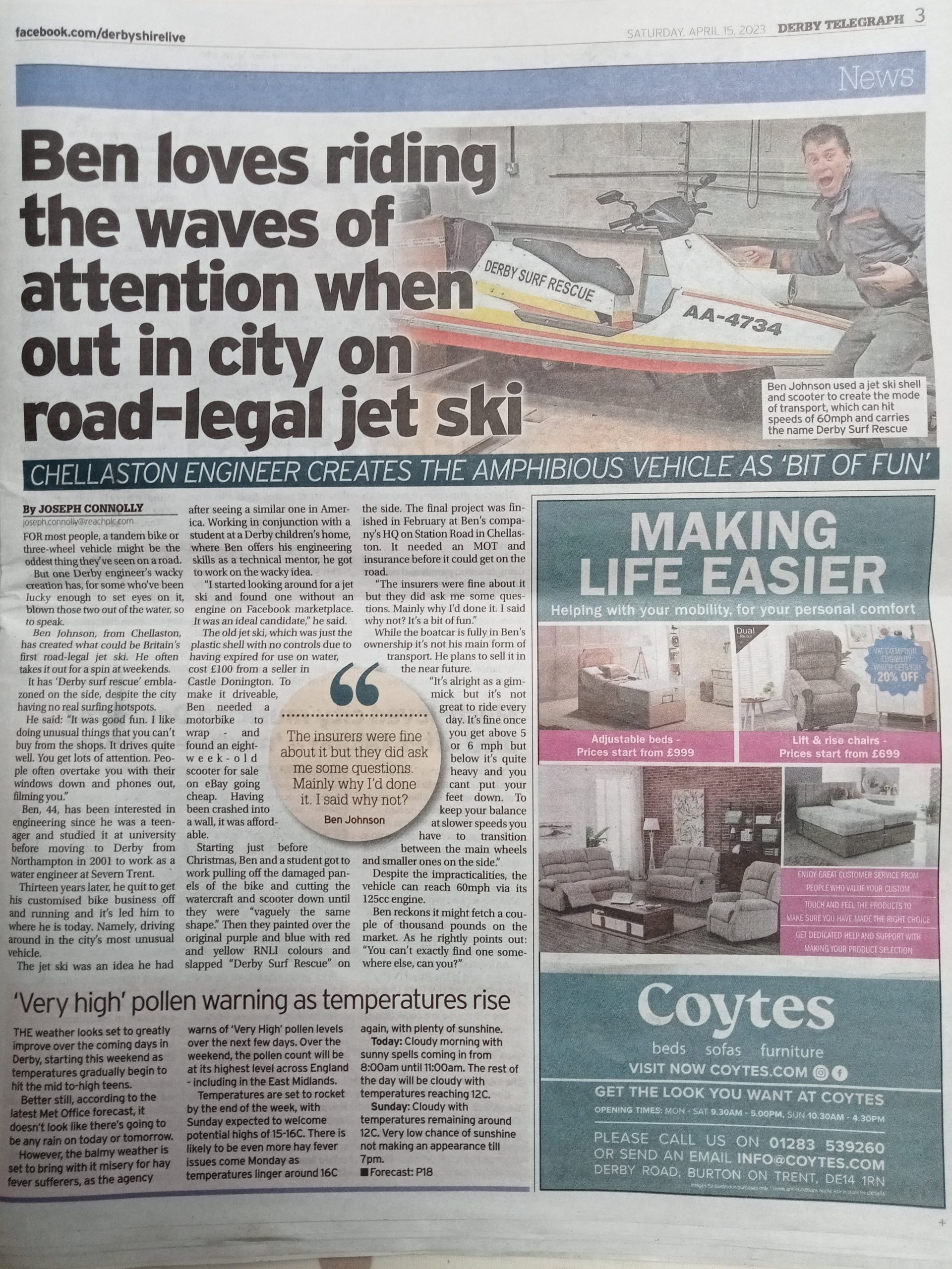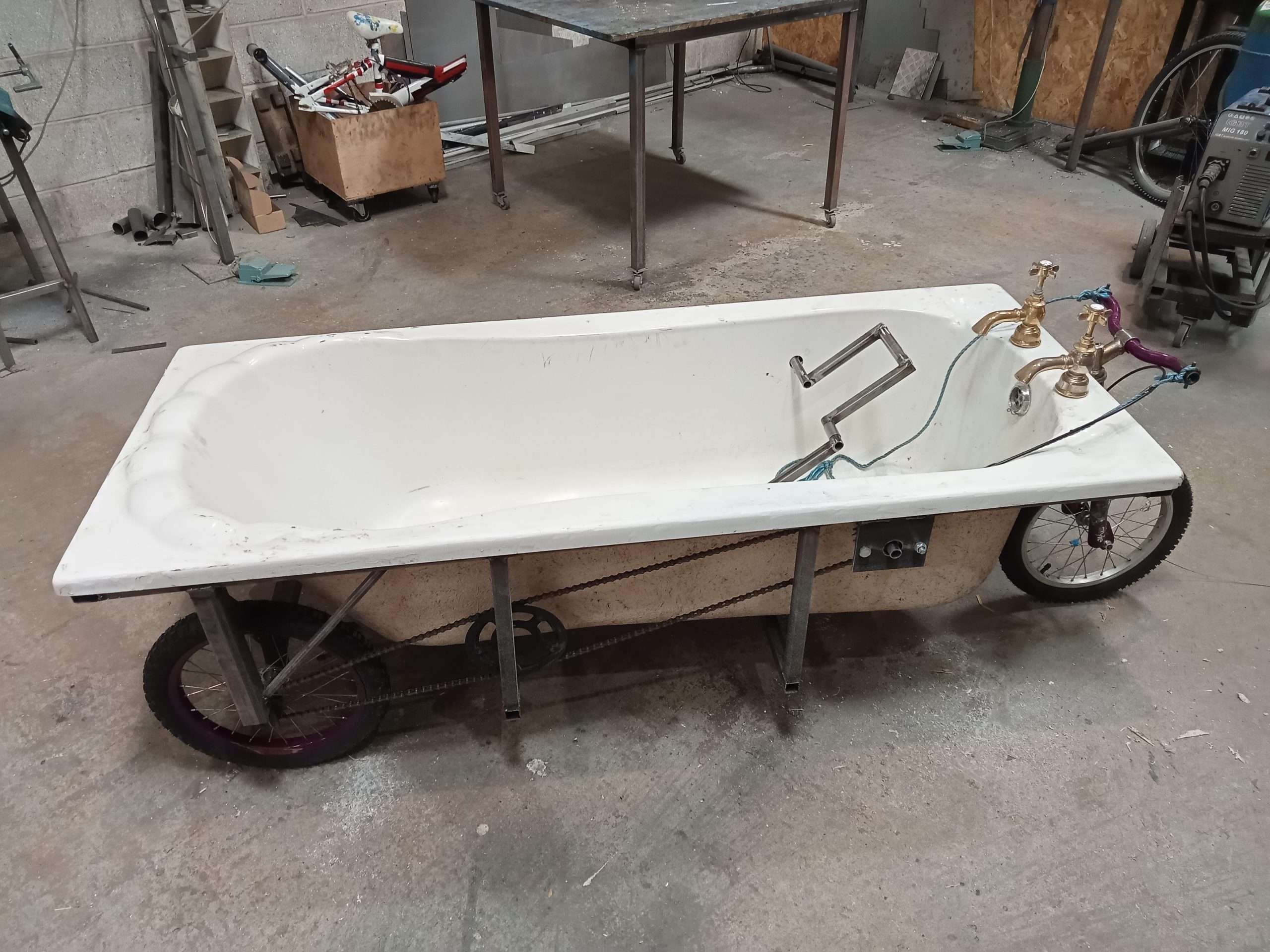 Bath bike: This was a fun engineering challenge! A full size bath that was required to be pedalled whilst full of water and bubbles.