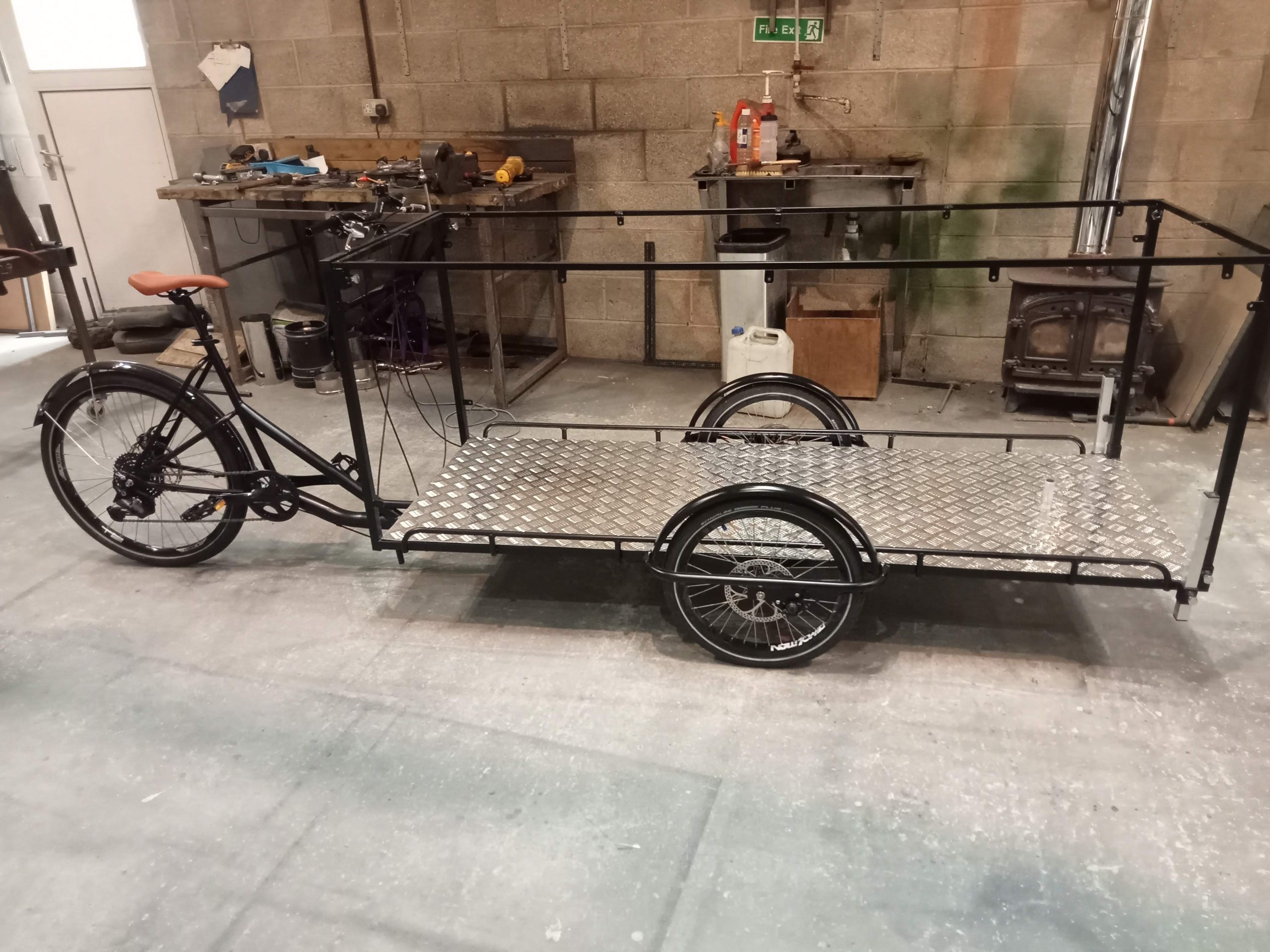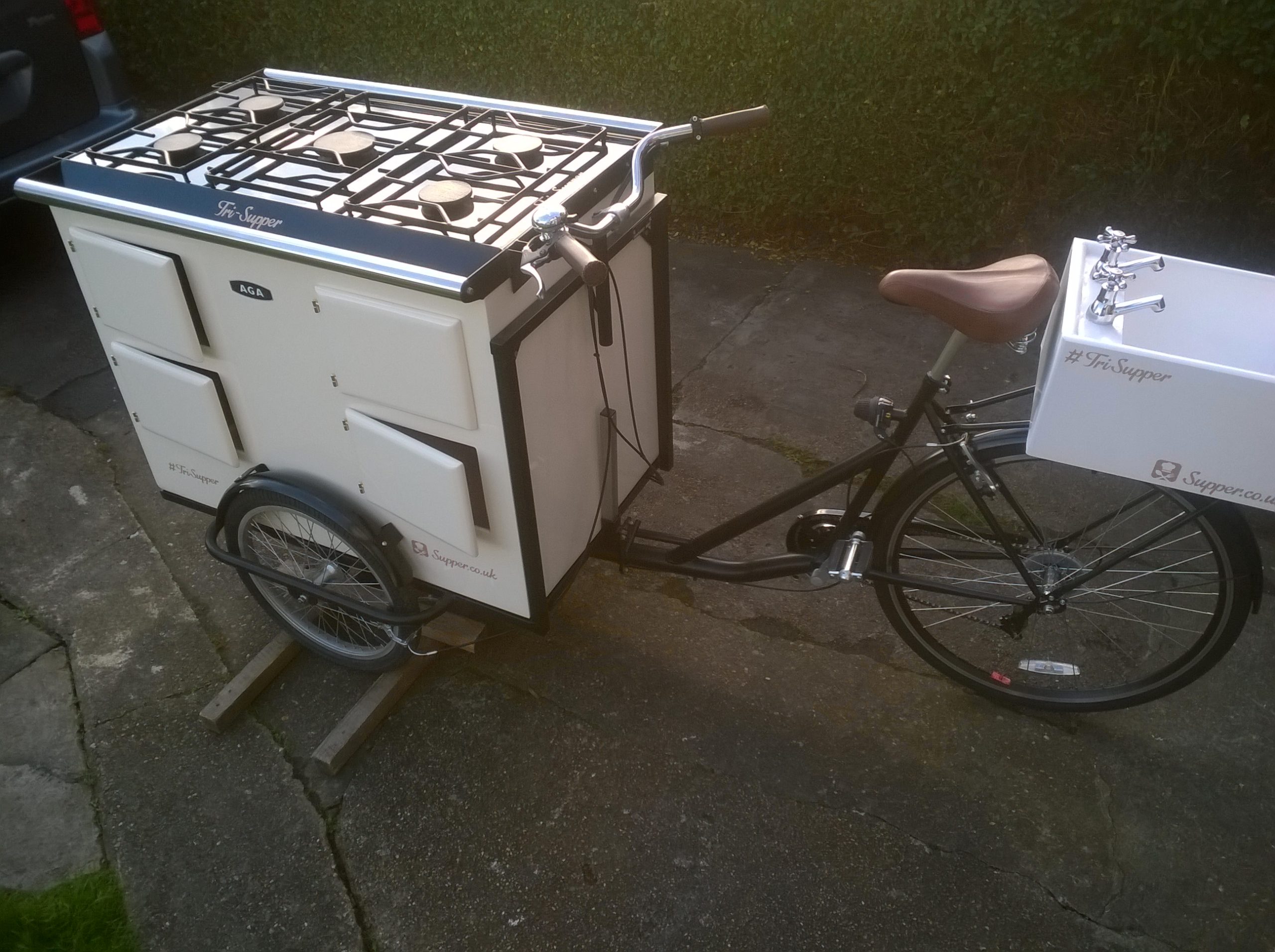 Aga cooker trike: This customer requested a 300kg Aga fitting on a trike! We built a lightweight version instead, complete with Belfast sink